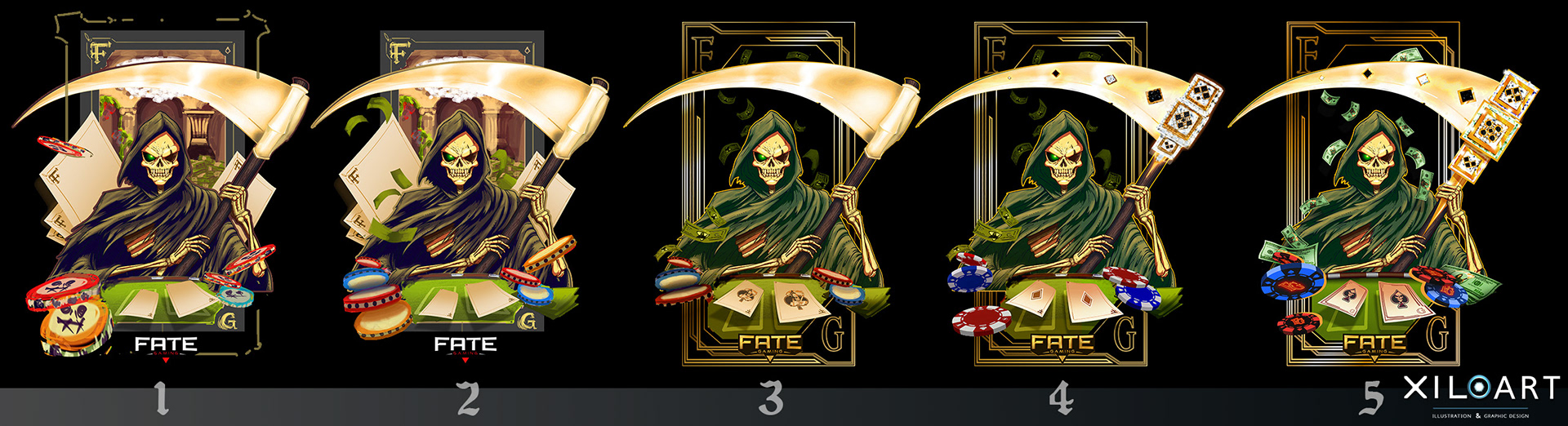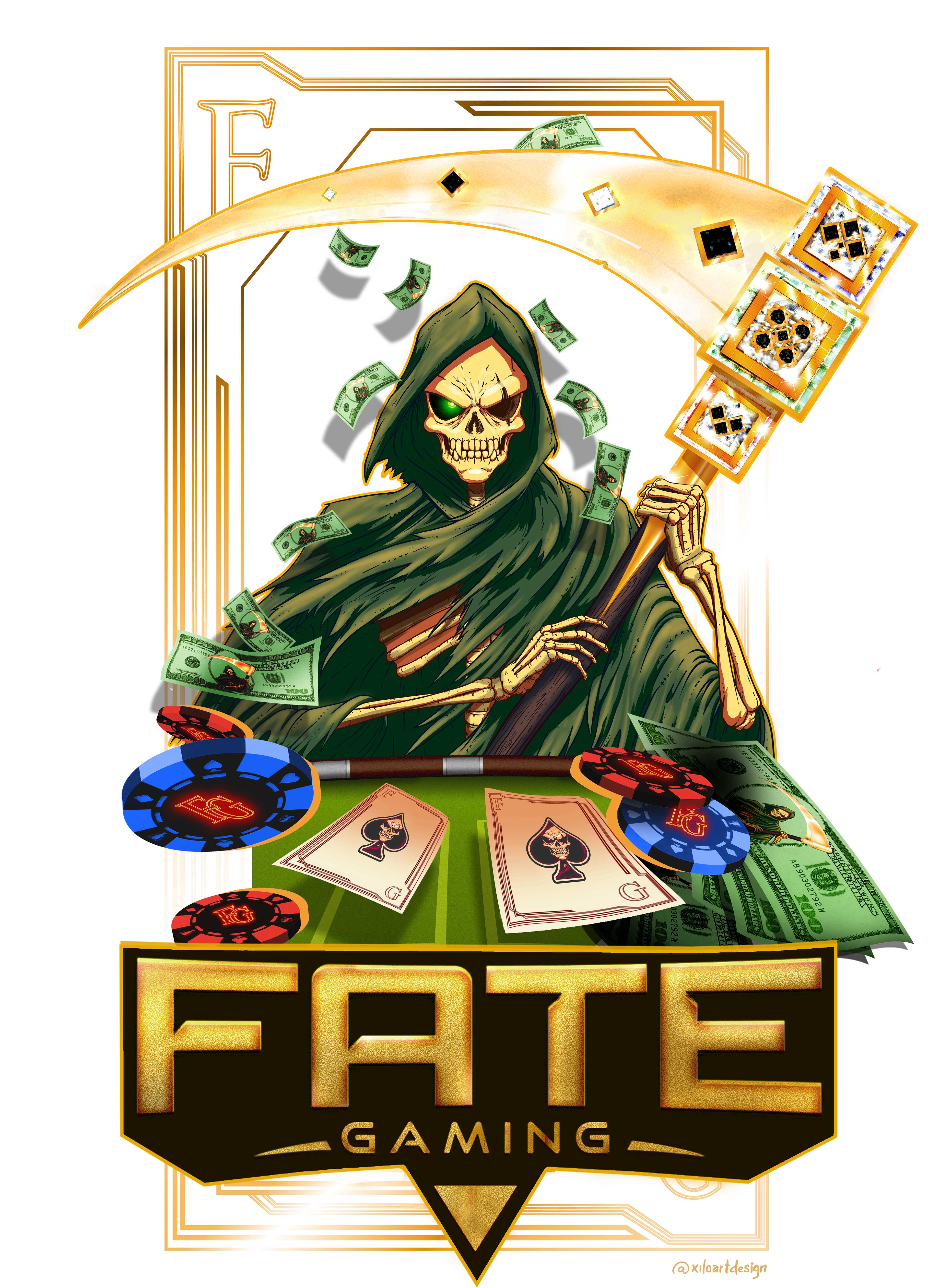 Commissioned Piece for Fate-Gaming Discord Community. Was able to design my own take on the Clan's logo plus some fun variations for the different crowds, and came up with some fun ideas and a great catalog.