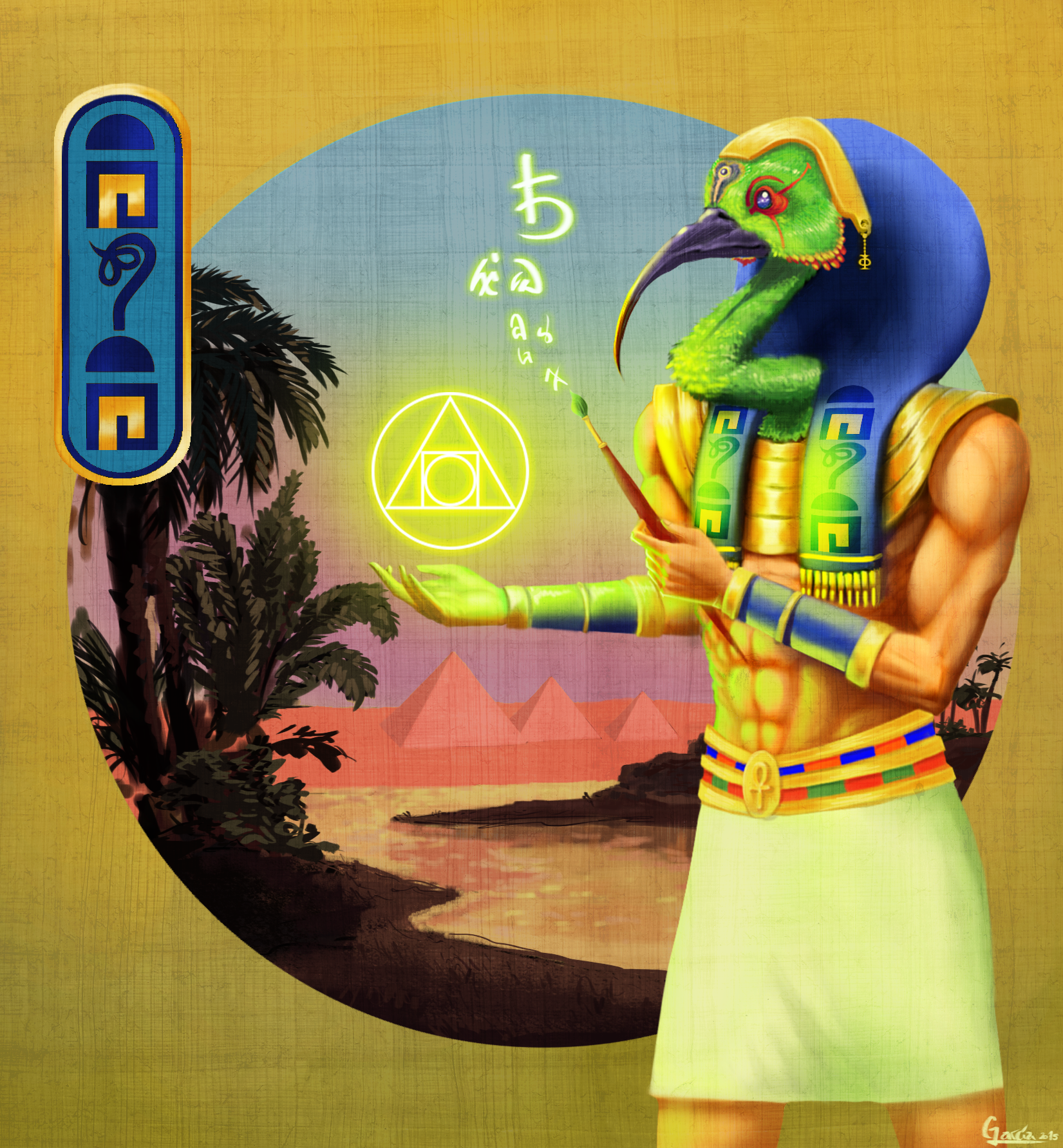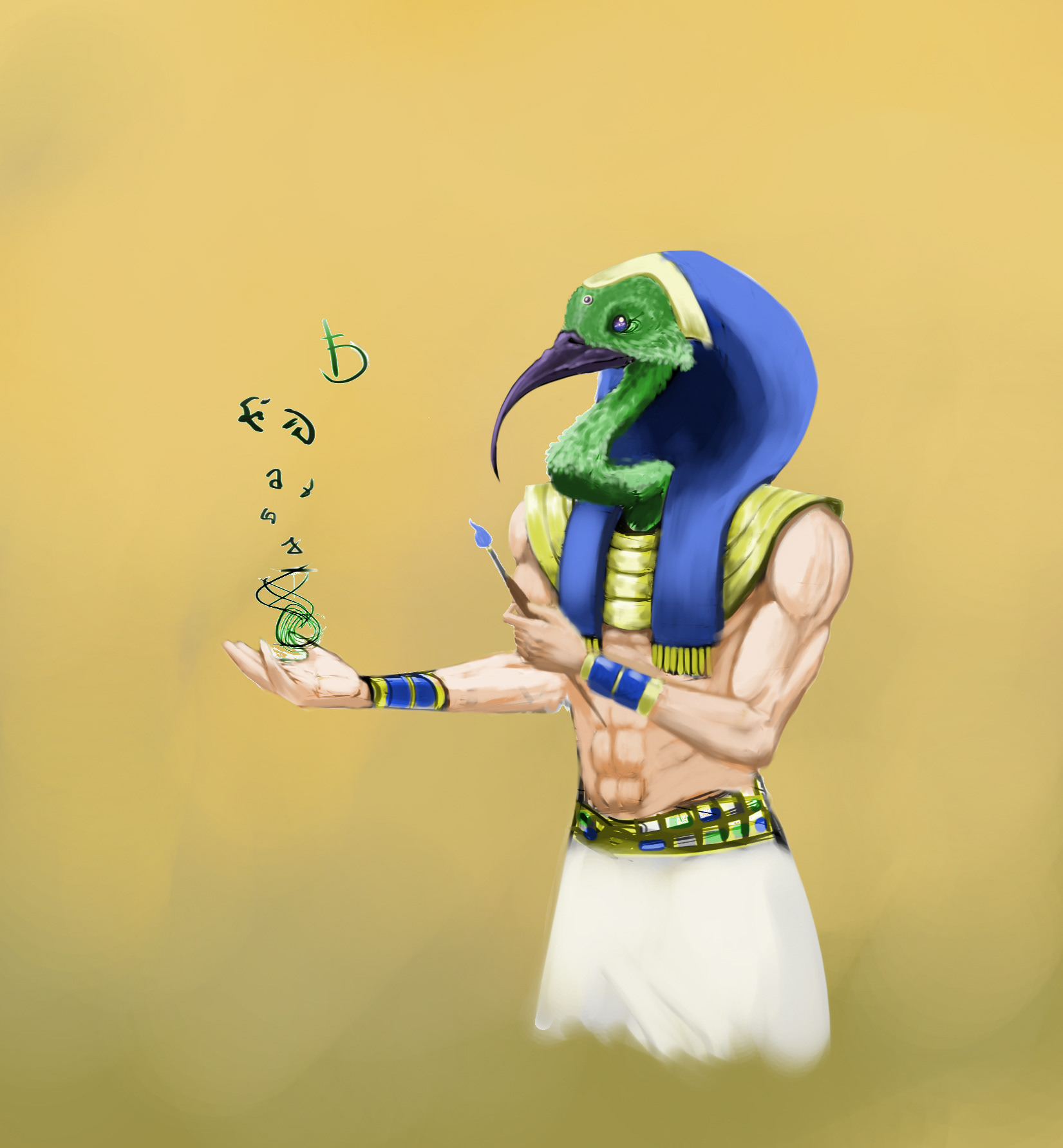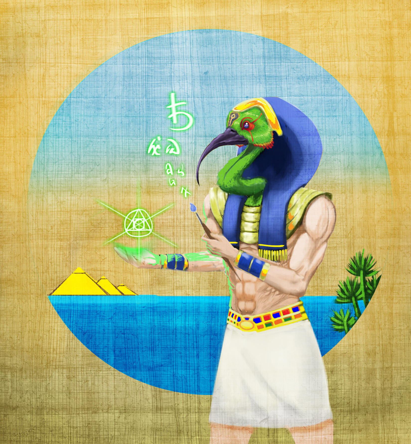 Thoth is the ancient Egyptian deity of wisdom, writing, magic, and the moon, often depicted as an ibis-headed man or a baboon. As the inventor of hieroglyphs and divine scribe, he recorded the judgment of souls in the afterlife. Recognized as a creator god and messenger, he upheld cosmic order (Ma'at) and was worshipped as the patron of scholars and scribes.